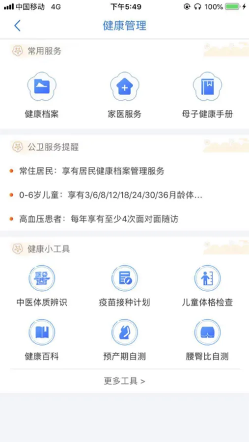 目前,江苏健康通已上线智能导诊、预约挂号、门诊缴费、检查须知、报告查询、互联网医院等就医服务,还提供健康档案管理、家医服务、母子健康手册以及中医体质辨识等更多健康小工具,支持推送健康服务提醒和健康资讯知识,给人民的就医带来便捷,逐步提高健康水平和素养。我们以全方位、全周期保障人民健康为宗旨,打造最适合广大人民的健康服务平台,让健康离您更近。