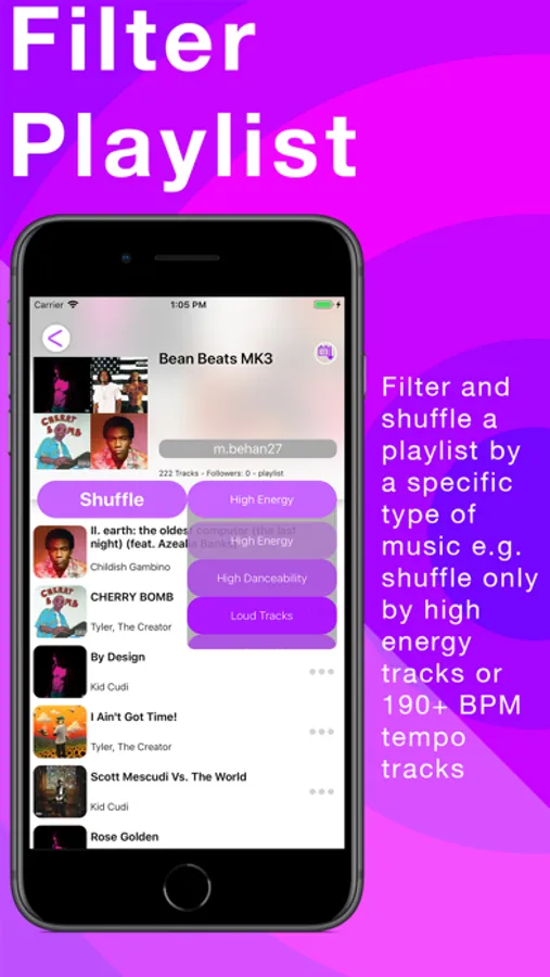 - Filter your playlist/album to only play a certain type of music e.g. high energy tracks or high tempo so you only get the mood of music you want