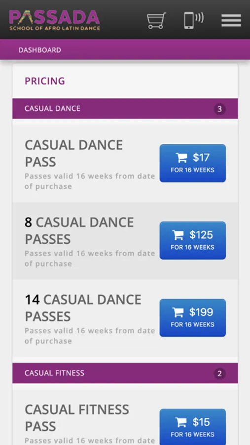 Make Purchases - Easily buy more passes to all your favorite classes right from the app. No more waiting in line to give us your money for class next month.