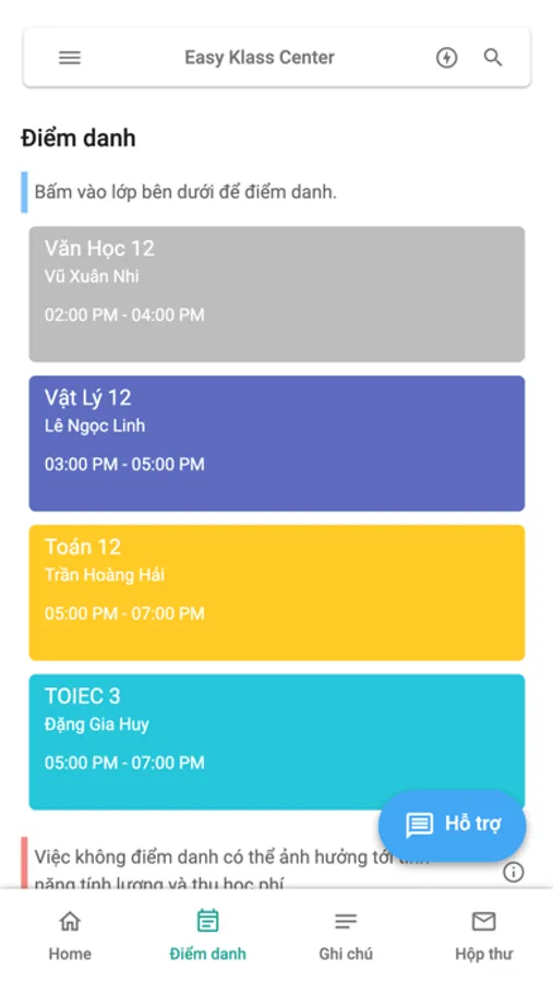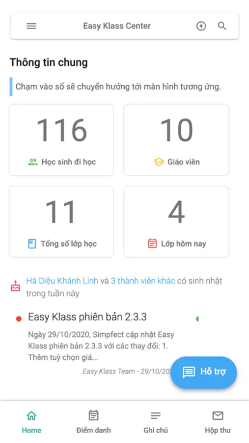 Trung tâm của bạn sẽ được vận hành theo một cách rất khác. Vào một ngày đẹp trời, khi các lớp của bạn đang hoạt động, bạn mở phần mềm và thấy những con số bắt đầu nhảy? Số học sinh đi học tăng lên, một vài học sinh nghỉ, kèm lý do bên dưới. Một vài học sinh khác đến muộn. Một vài giây sau, bạn nhận được thông báo khi có một học sinh đóng tiền. Bằng một hai lần bấm khác, bạn biết được chính xác số tiền nhân viên đang cầm.