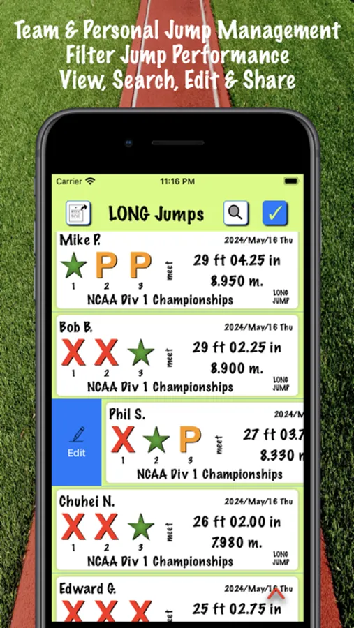 • Add, Save and Edit practice and meet jumps for teams and individuals
