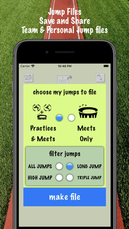 • Save and share jump files with coaches, scouts, trainers and friends