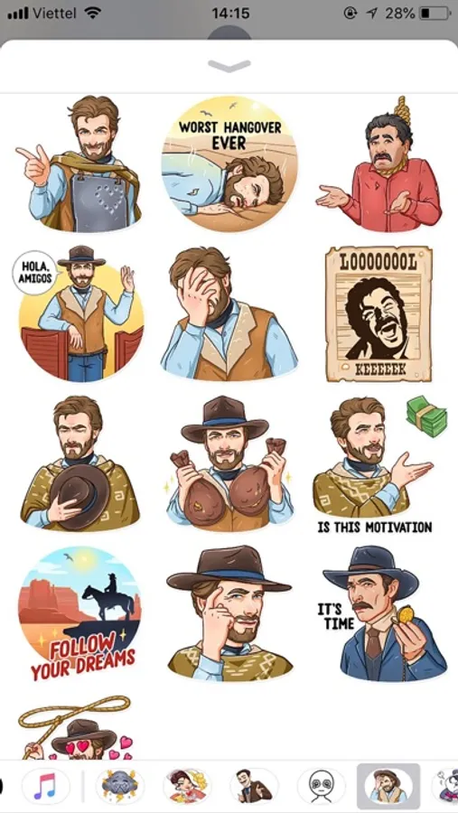 SET FULL COWBOY EMOJI PUN FUNNY STICKERS EMOTION PACK