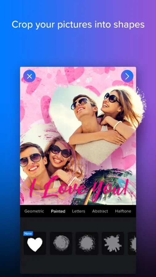 - A feature that allows you to cut your photos shapely.