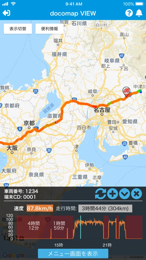 アプリを起動するだけで、すぐにDoCoMAPの車両動態管理画面が表示されますので、これまでのようにサイトにアクセスして、ログイン・ページ切換の手間がなくなります。