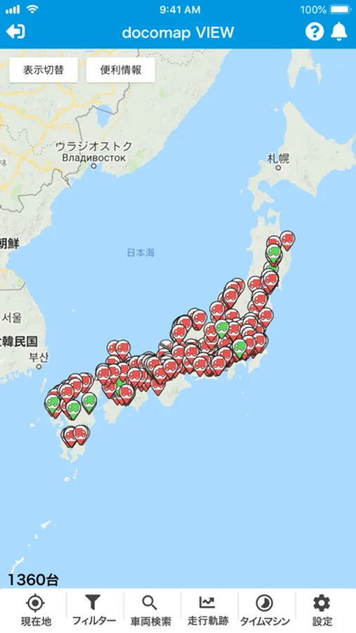また、表示する際は自分の現在地を中心に車両の位置が表示されますので、最寄りの車両がすぐに確認出来るようになります。