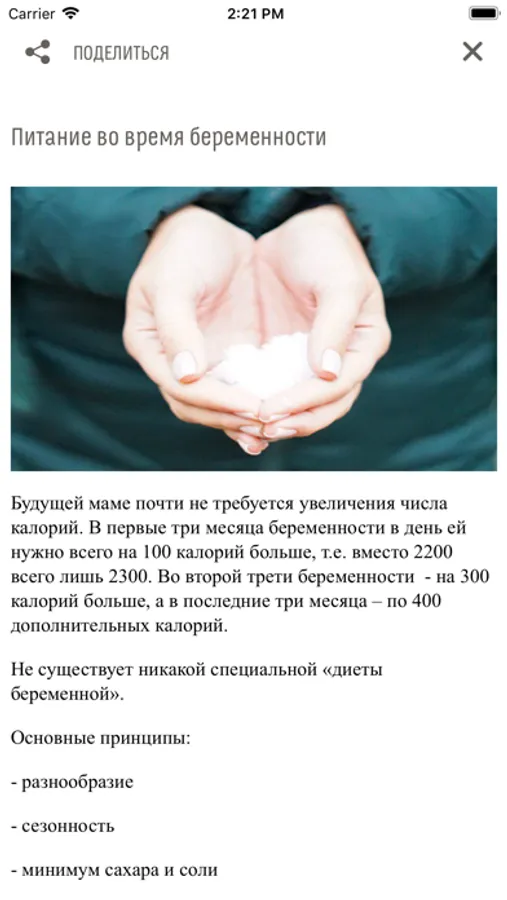 В режиме для беременных вы сможете узнать о новой жизни под сердцем – в помощь понедельный календарь беременности и статьи от экспертов. Фотографируйте день за днём, как красиво меняется ваше тело и сохраняйте в личном кабинете.