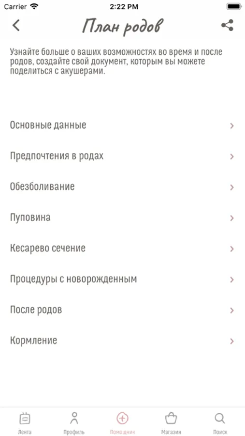 Приложение разделяется на два режима - планирование и беременность. Вы узнаете, что именно нужно сделать на этапе прегравидарной подготовки – как подготовиться морально и физически к зачатию, какие анализы и исследования рекомендуется пройти, как провести первые недели беременности, обеспечив малышу максимально комфортные условия для развития.