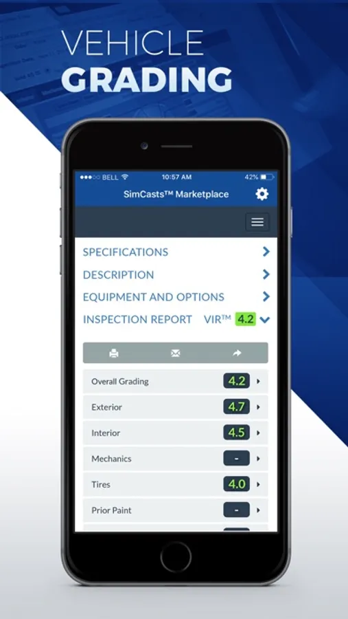 The interface of the SimCasts™ Marketplace app is user-friendly and navigation is very intuitive. Everything that a buyer needs to know in order to purchase a vehicle is fully displayed on their mobile device: