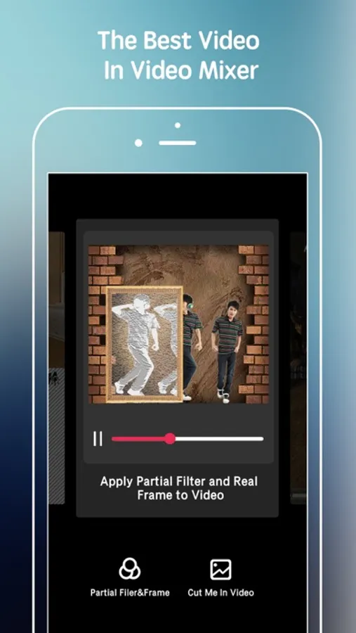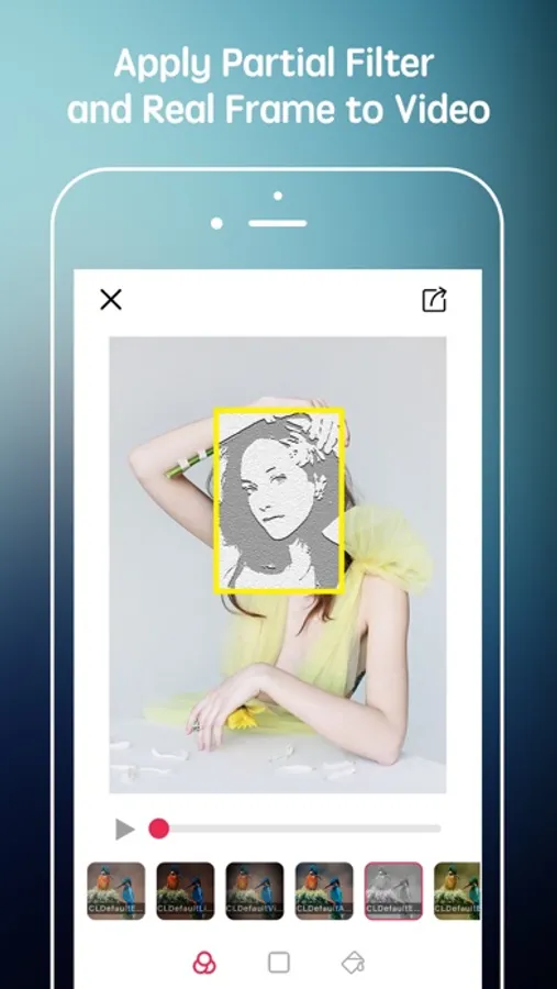 This app allows you to apply partial filter and real beautiful frame to video. Over 20 frames and styles to choose from.
