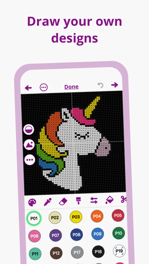 When drawing your own designs, you can show an image in the background. This can be super helpful as a reference to trace over. You can also show the original image after converting a photo, which makes tidying up your patterns even easier.