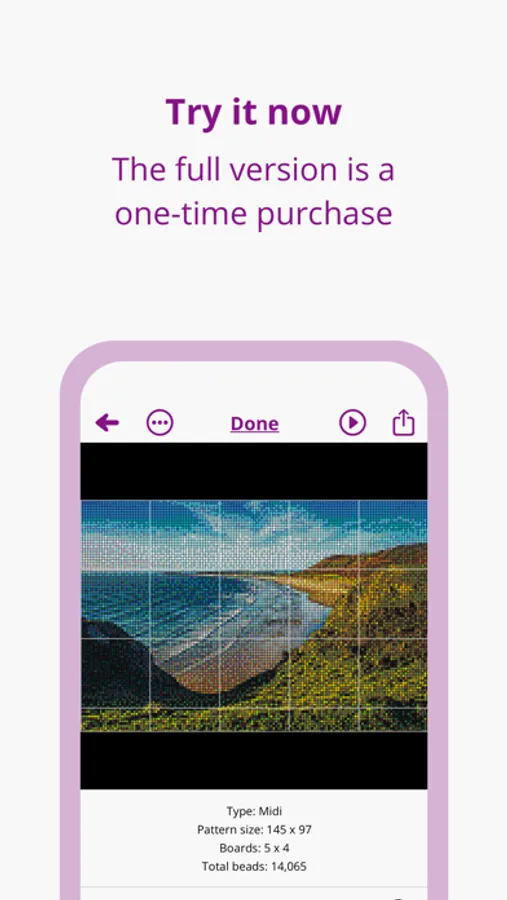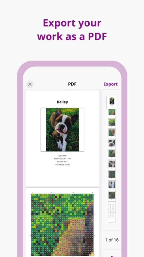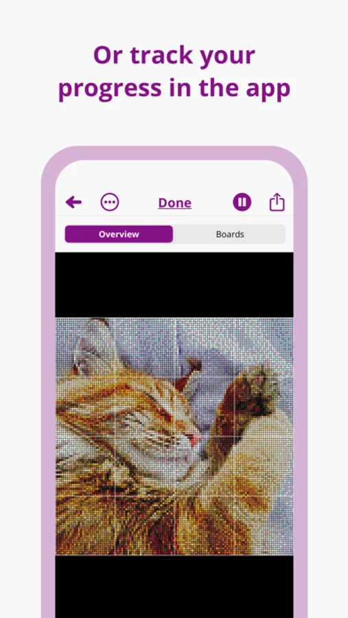 Once your pattern is finished and you’re ready to get beading, simply press play. You can then view your pattern board-by-board, mark individual beads as completed and track your progress.