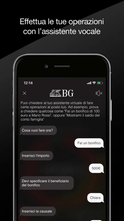 L’App ti offre inoltre la possibilità di conoscere il nuovo assistente vocale di Banca Generali Private che ti aiuterà a rendere ogni cosa ancora più semplice. Ad esempio, ti basterà chiedere di effettuare un bonifico a un beneficiario salvato in rubrica, senza digitare nessun campo, e confermare l’operazione!