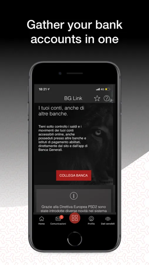 Easy, innovative, with cutting edge interface and functional solutions. With the Banca Generali Private app you can safely log-in with the most advanced recognition systems (Fingerprint or Face ID) to manage your account on your own, wherever you are.