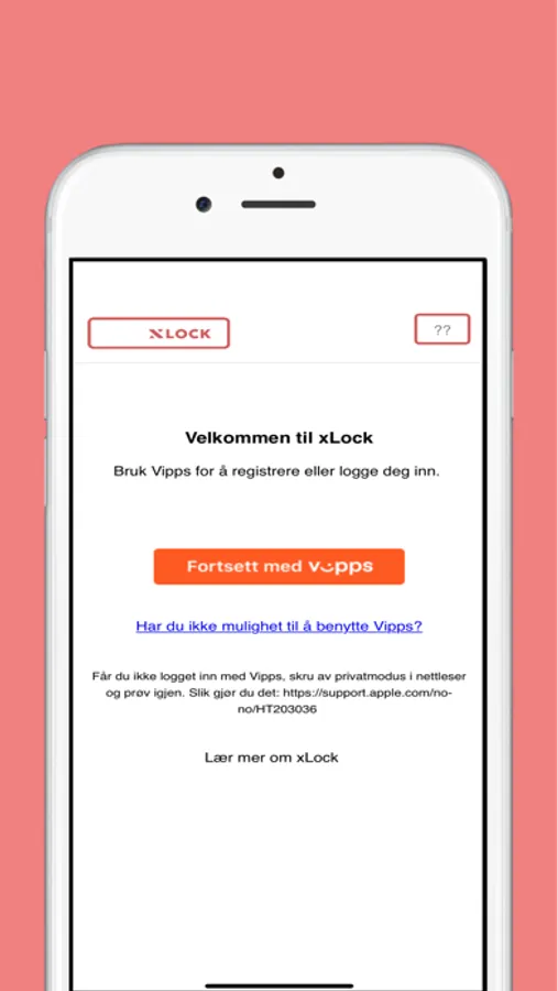 Med xLock mottar du link til ny nøkkel på SMS, og aksepter med Vipps. Du er nå klar til å åpne døren med ett klikk på mobilen.