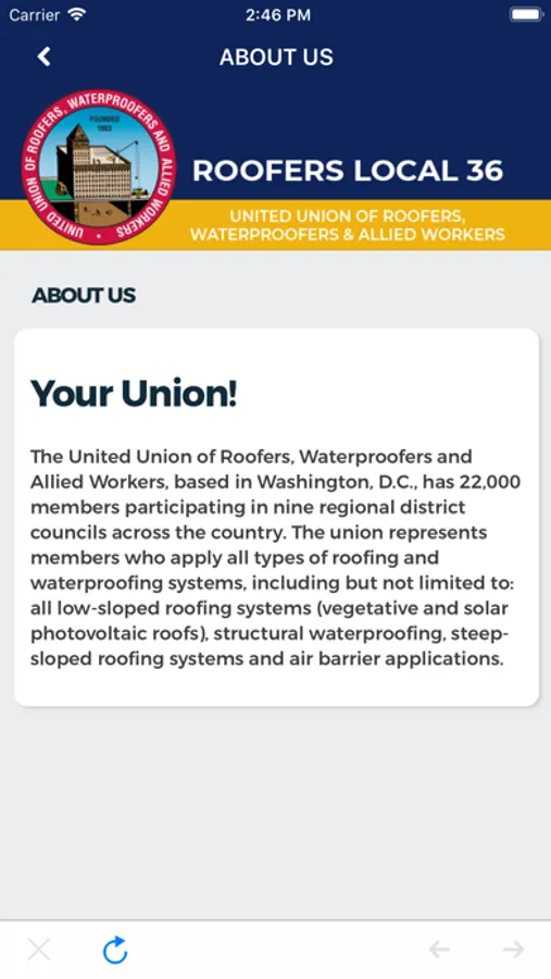 The Roofers Local 36 mobile app is designed to educate, engage and empower our Members. This app is to be used as a tool to better understand the benefits available to our Members working in the Industry. This app is only available to Roofers Local 36 Members.