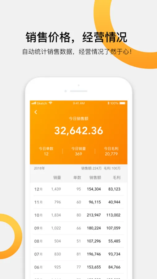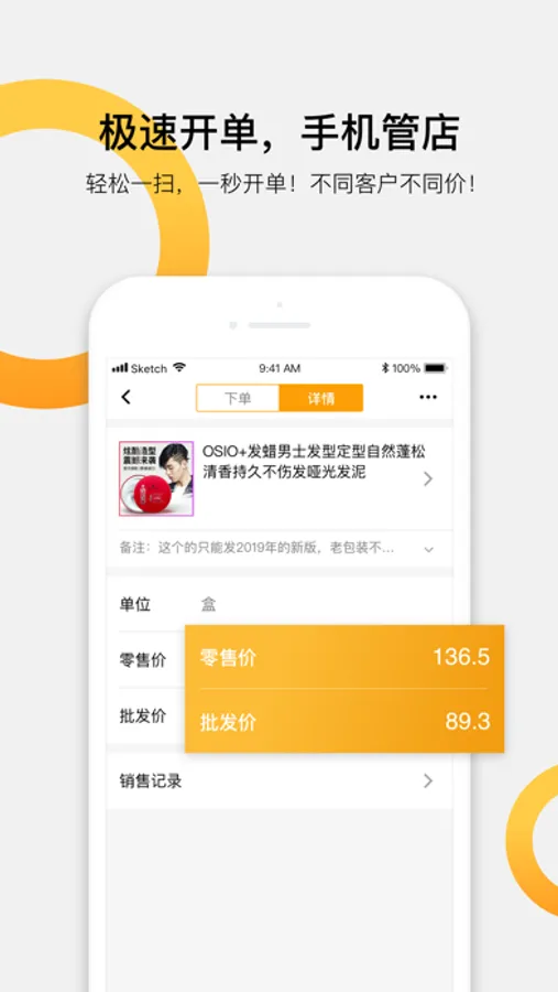 轻松一扫,价格一目了然,批发价、零售价、不同客户不同价!自动统计销售额、利润、欠款等,经营情况了然于心!