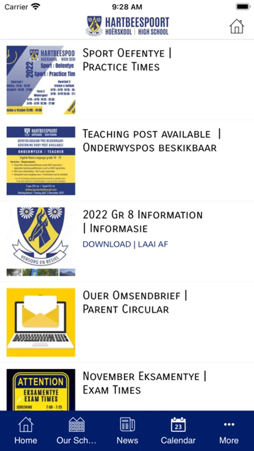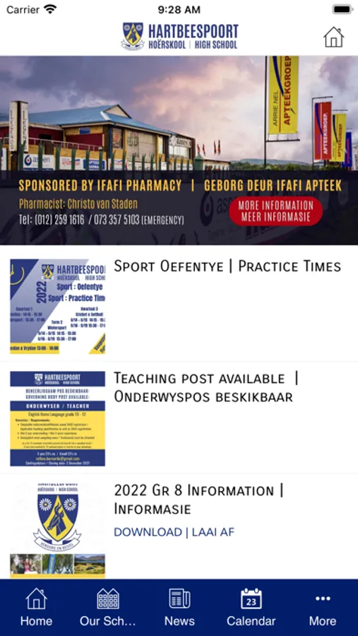 Ons nooi jou uit om Hoërskool Hartbeespoort se toep af te laai. Dis die ideale manier vir ouers, personeel en leerlinge om op hoogte te bly met: