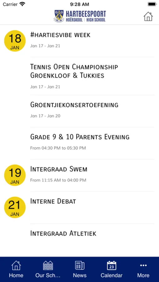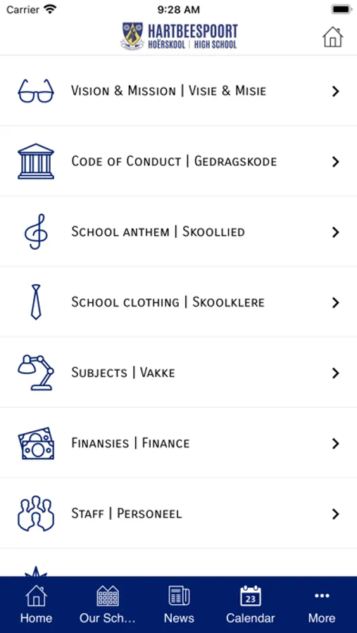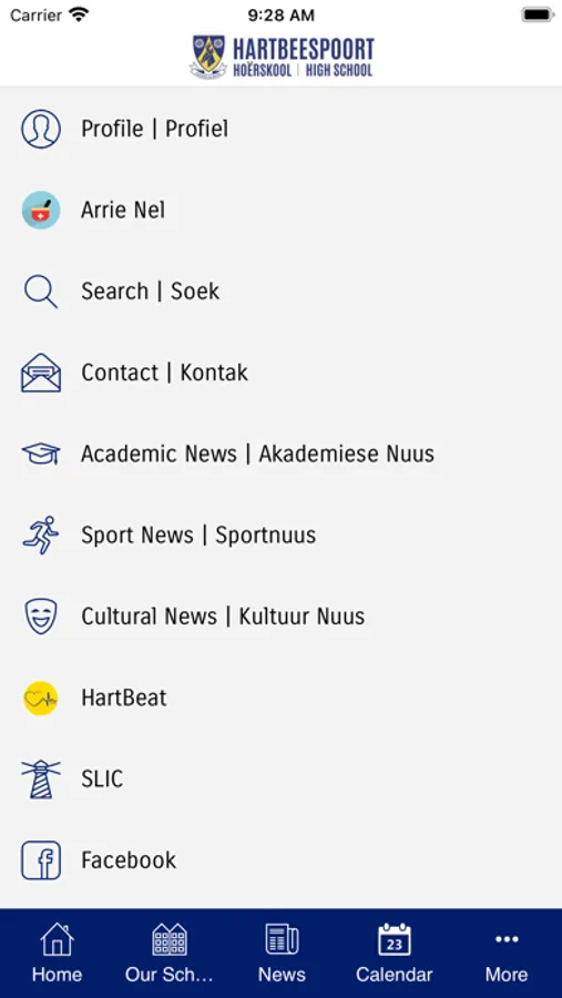 We invite you to download the Hartbeespoort High School app. Ideal for parents, staff and pupils to keep up to date with: