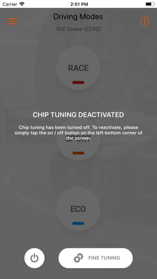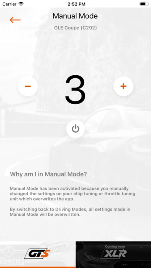 Control chip tuning and throttle tuning with one app and fine tune the respective settings to perfectly match your car's specifics and your personal driving style. Map these settings to three easy to the access driving modes Eco, Sport and Race.