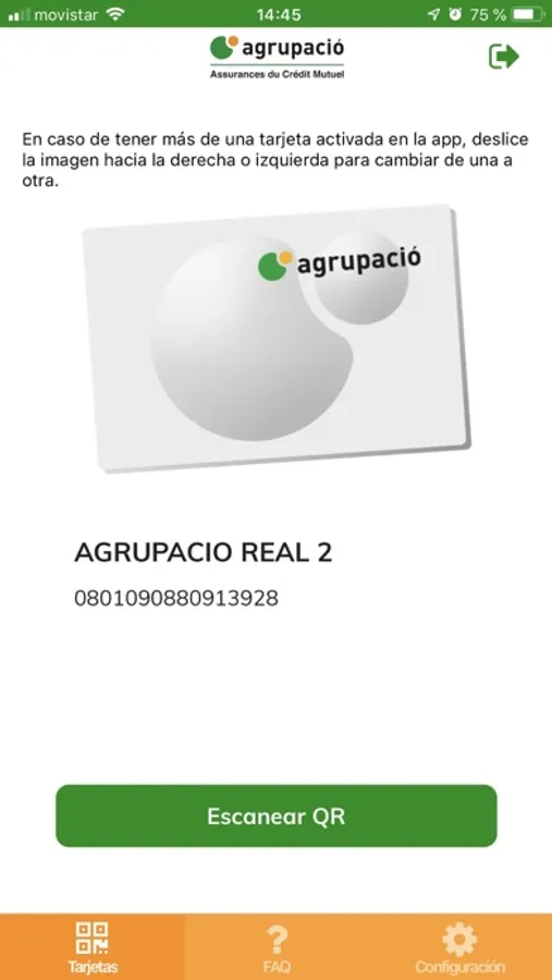 Agrupació, a través de esta aplicación, pone a su disposición la Tarjeta Virtual de Salud para que se identifique digitalmente con su móvil de una forma fácil y cómoda cuando vaya al médico. Solo tendrá que acceder a la Tarjeta Virtual de Salud mediante su usuario y contraseña y leer el código QR desde la pantalla de la recepción de su médico o centro médico.