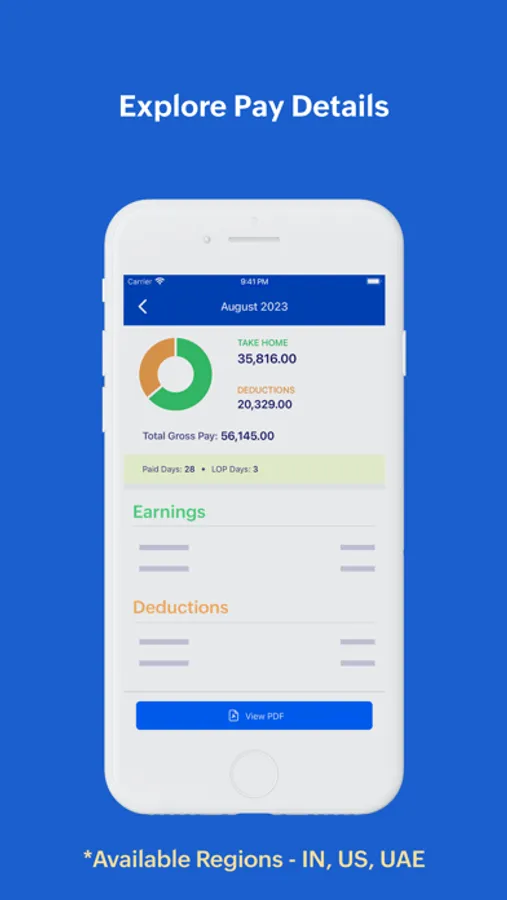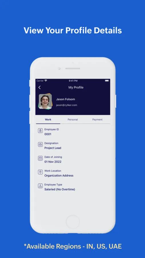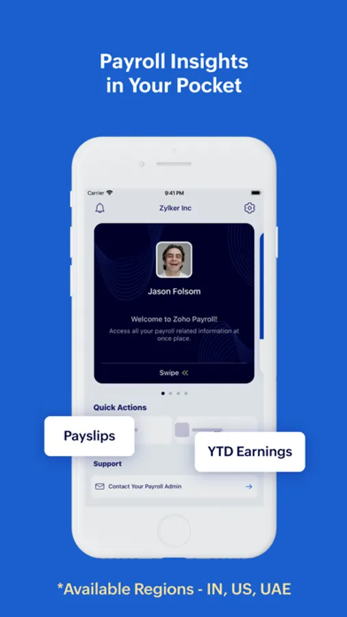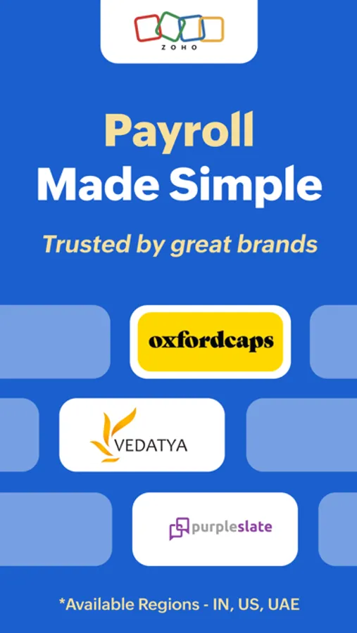 The Zoho Payroll Employee Portal app provides employees in India, the US, and the UAE with convenient access to essential salary information and other features.