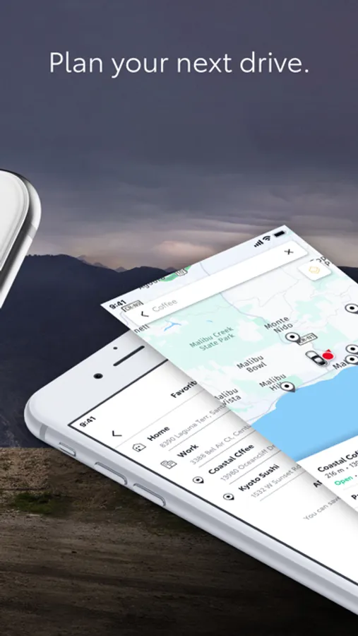 • PLAN AHEAD: Send destinations from the app to your in-car navigation system with one tap