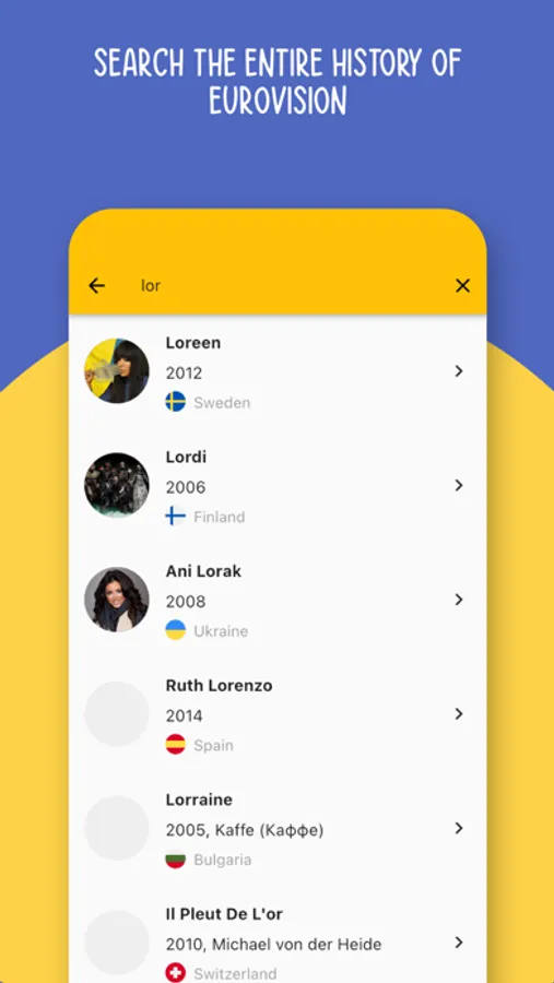 Super fast search allowing you to search the entire history of the Eurovision Song Contest!