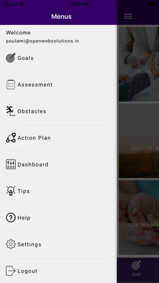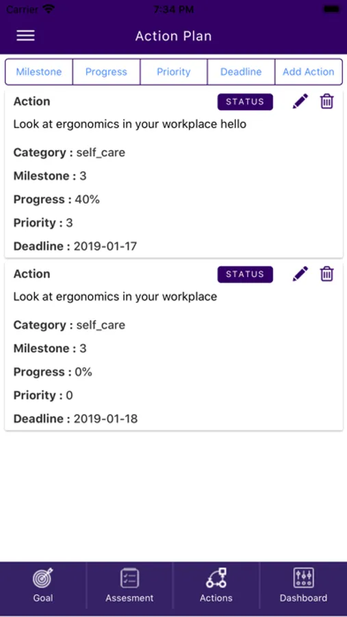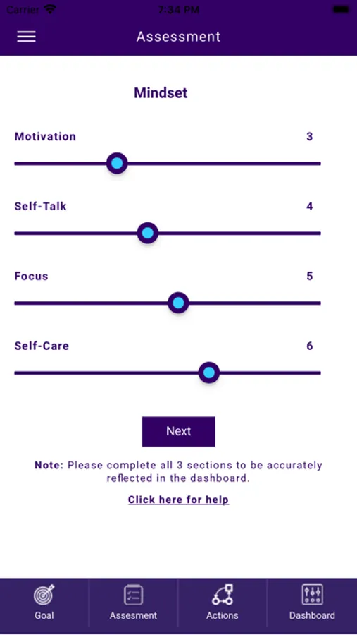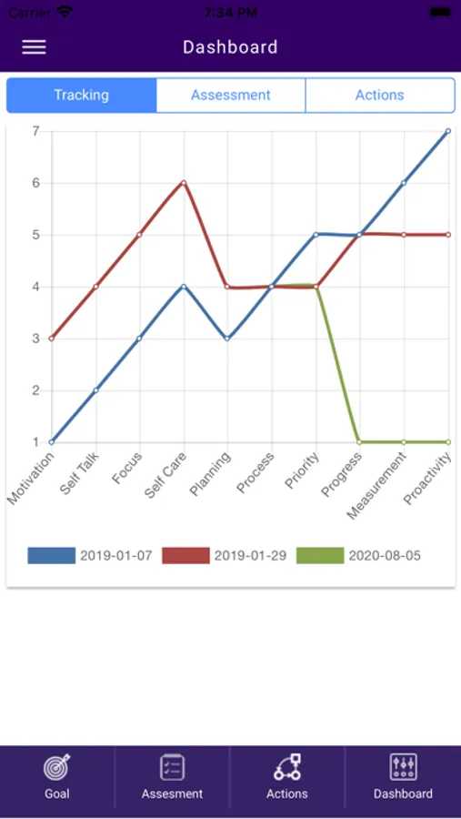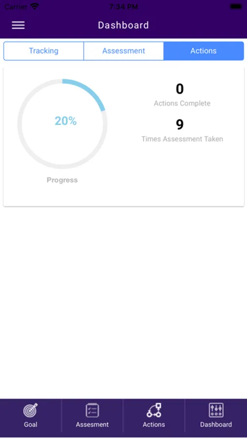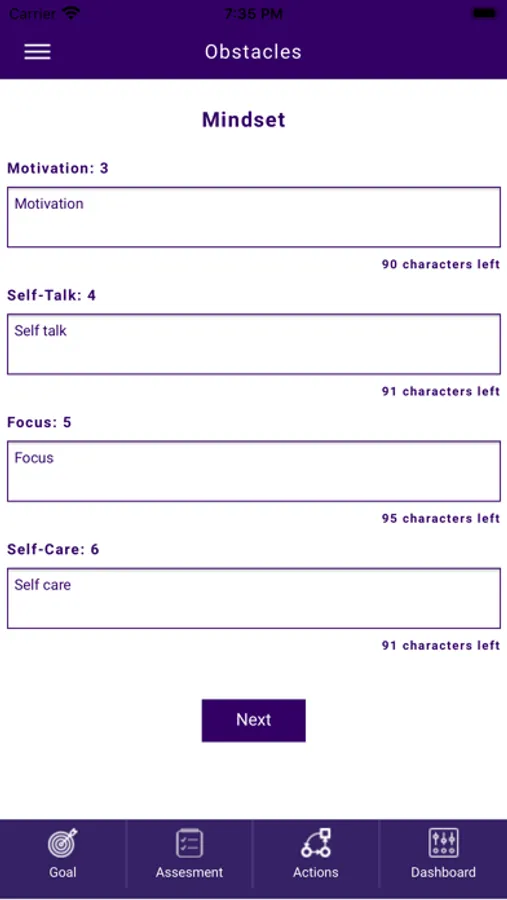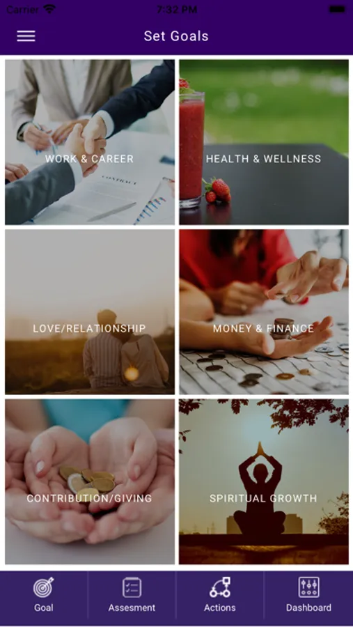Here you set the primary goal you want to accomplish and create 4 milestones that you will set actions in the app to support you in tracking your progress