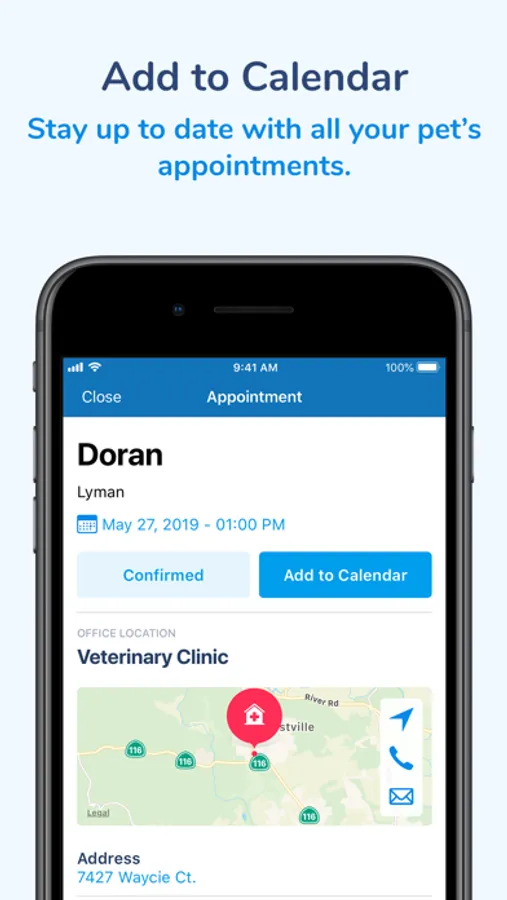 VetPawer ™ is the new connection between your pets and your favorite veterinary office. VetPawer ™ features unique technology which allows you to access your pet’s medical records, book real time appointments, request health certificates, and much more. You can even personalize VetPawer ™ with your own pet photos. You can see a map and directions to your veterinary hospital, and through the VetPawer app can easily contact your veterinary office. The VetPawer ™ app is connected to your pet’s records at your veterinary office so it is always up to date.