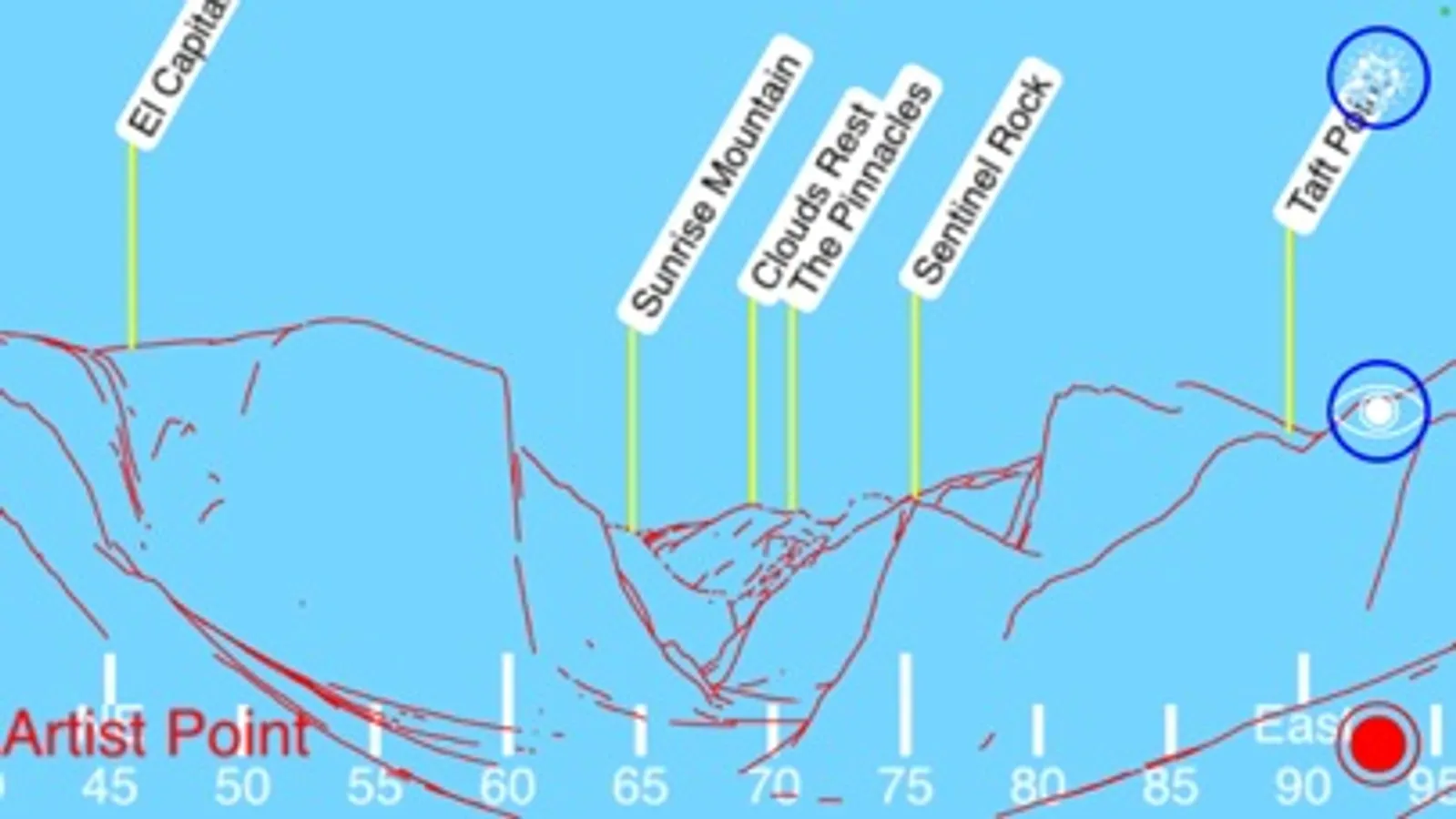 Now stand at your vista and hold your iPhone up and have all those mountains labeled for you! As you turn, the scene on your iPhone turns with you. Mountains to the north - hills to the west - all are now labeled for you.