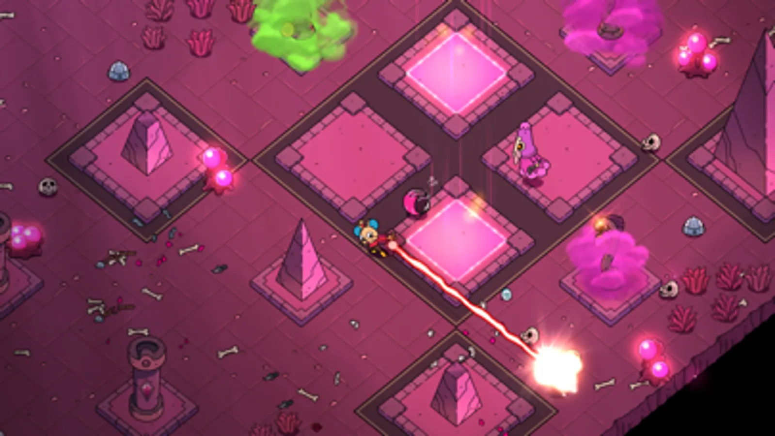 Weapons, Items, & Stickers: Wield the traditional sword and bow combo alongside the decidedly less traditional vinyl record Frisbee, magic golf club, and colossal foot from the heavens to put Mormo and her legions back on their heels. Collect and equip stickers to boost up your hero and add perks to their gear to become powerful enough to banish the wicked sorceress.