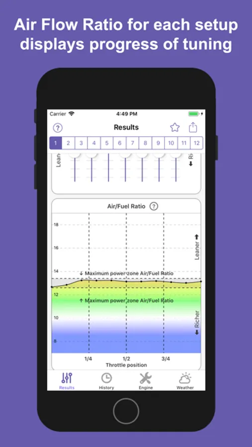 • Graphic display of fuel mix quality (Air/Flow Ratio or Lambda)