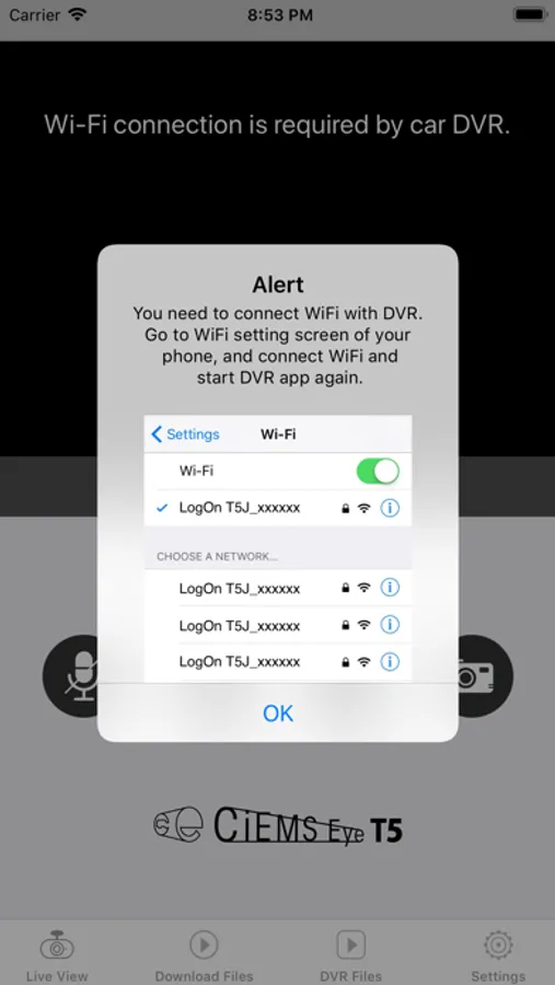 This app can play live video feed and recored files from Wi-Fi enabled Car CiEMS_Eye T5