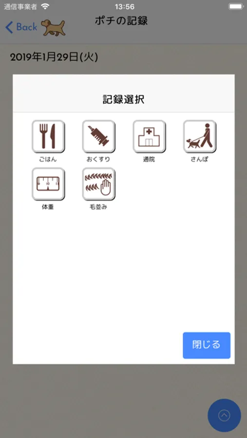 ‐毎日の食事や運動(散歩)等のお世話情報の記録可能