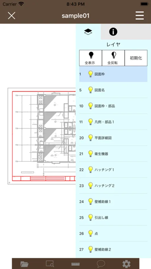 - レイヤ管理:表示状態の確認と変更、レイヤ名称の確認