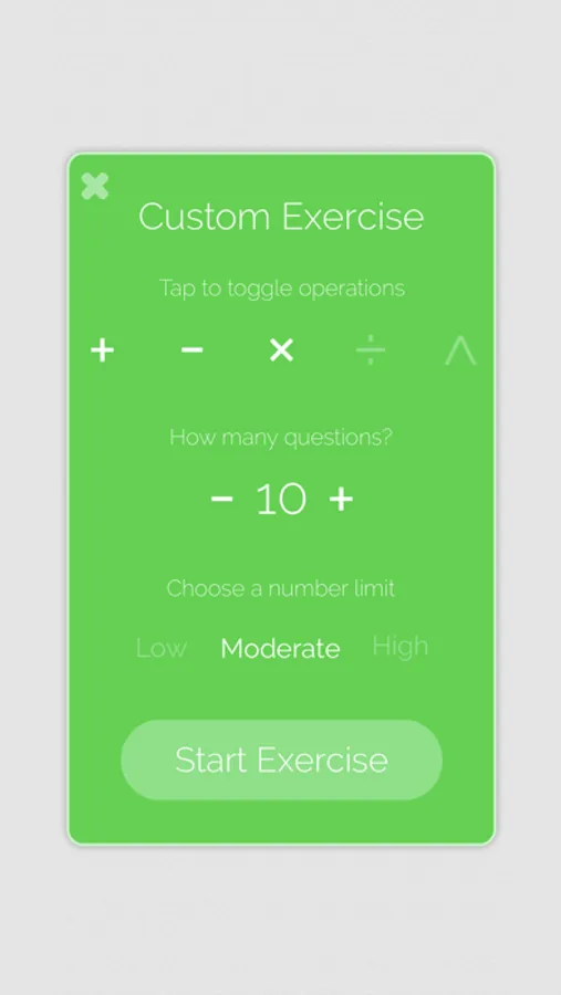 Custom exercises allow you to practice unique subsets of mental math skills that you desire to develop.