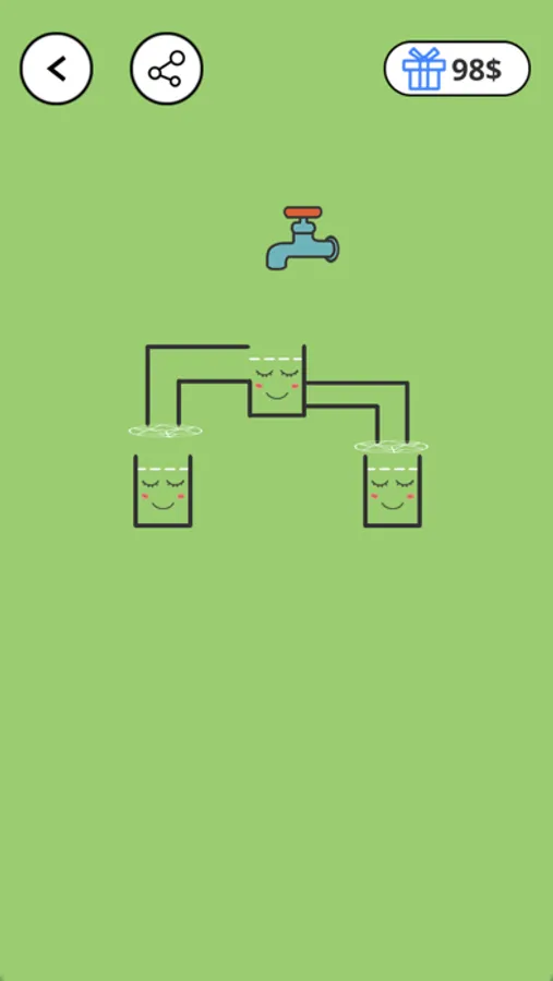 A game that challenges intelligence and observation, based on the height and broken of the glass, combined with physical knowledge to determine which glass will be fill up first.