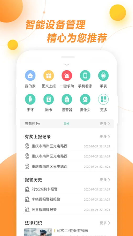 手机应用与多种智能穿戴设备,实现多种途径报警求助。一键报警、静默报警及图文报警,实现多种方式报警求助。