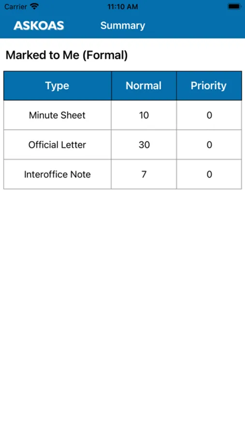 notes (ION) and official letters (OL). Staff and managers use these documents extensively for