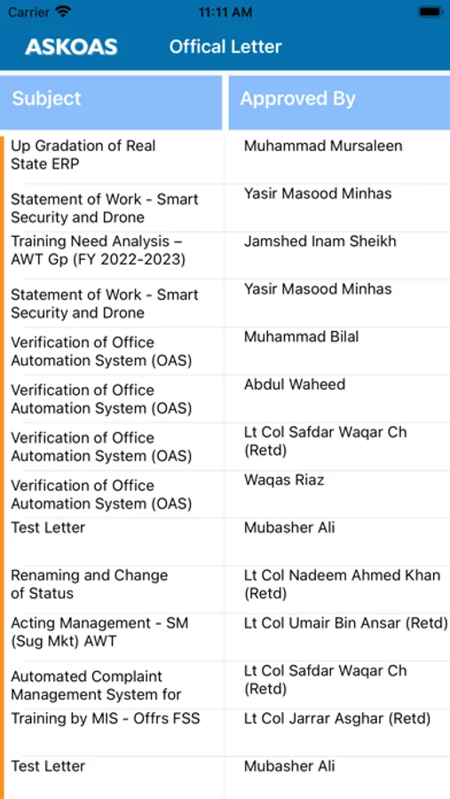 processing / approval of official matters. Currently all official correspondence is carried out using