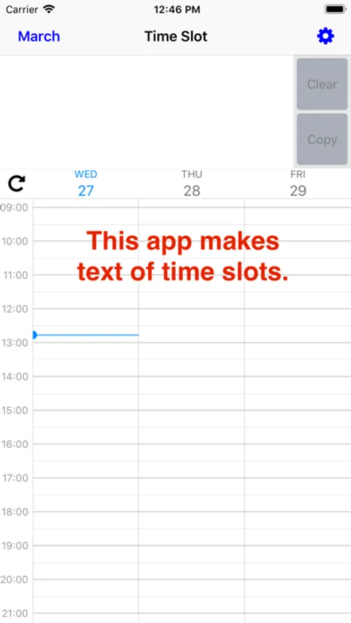 This app makes text of time slots. You can use this app for schedule adjustment.
