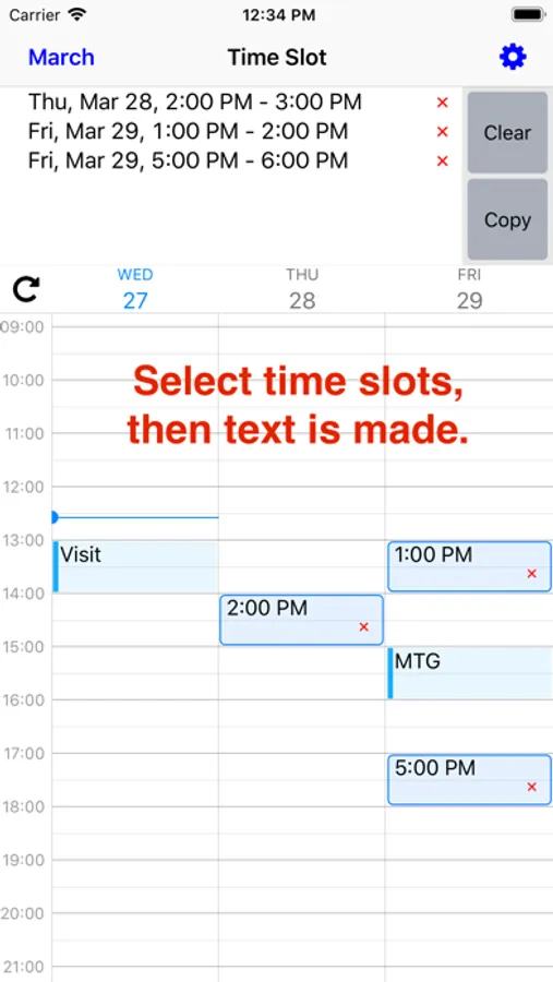 5. You can smoothly adjust schedule, pasting this copied text of time slots to mail or messaging tool.