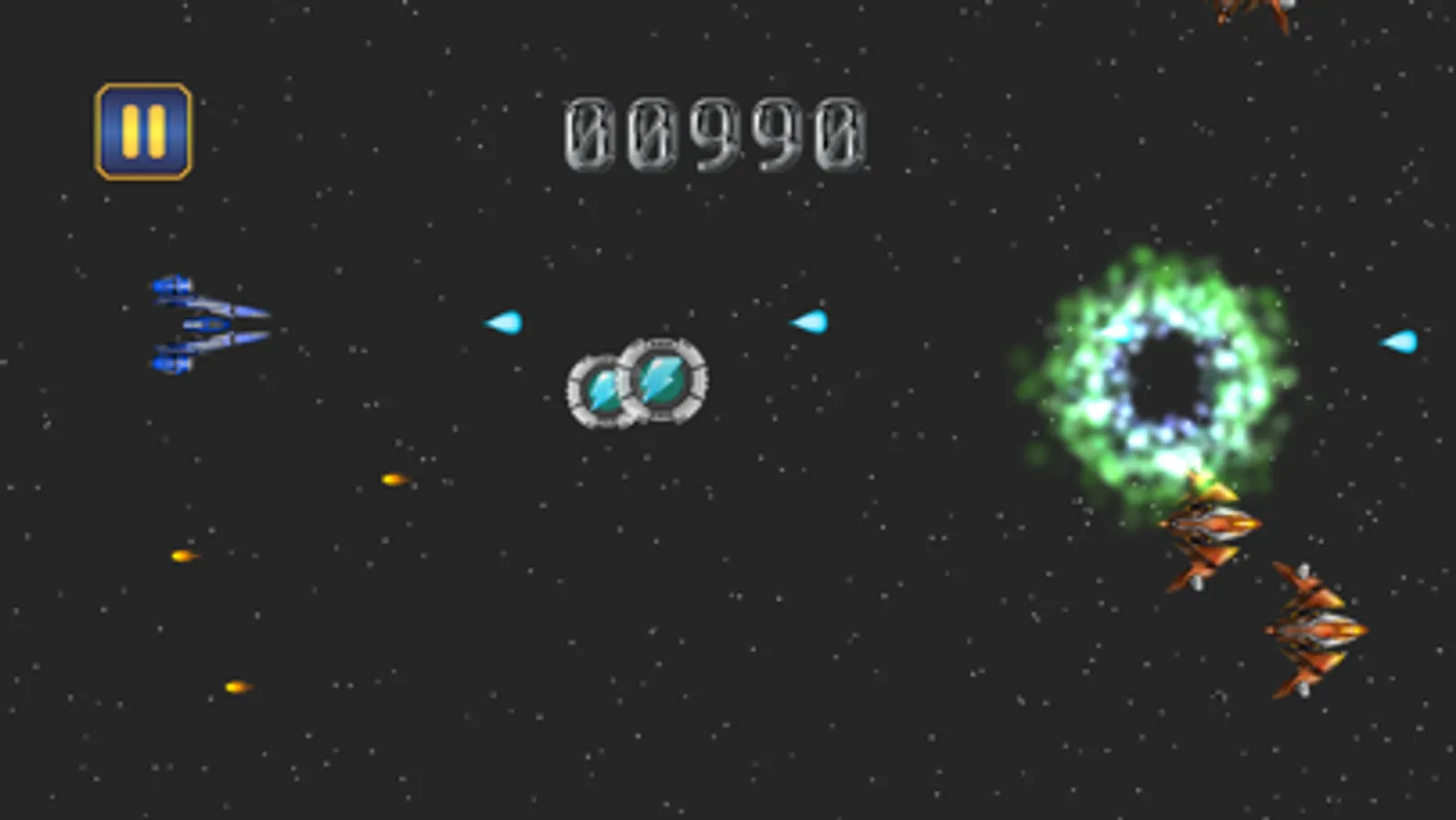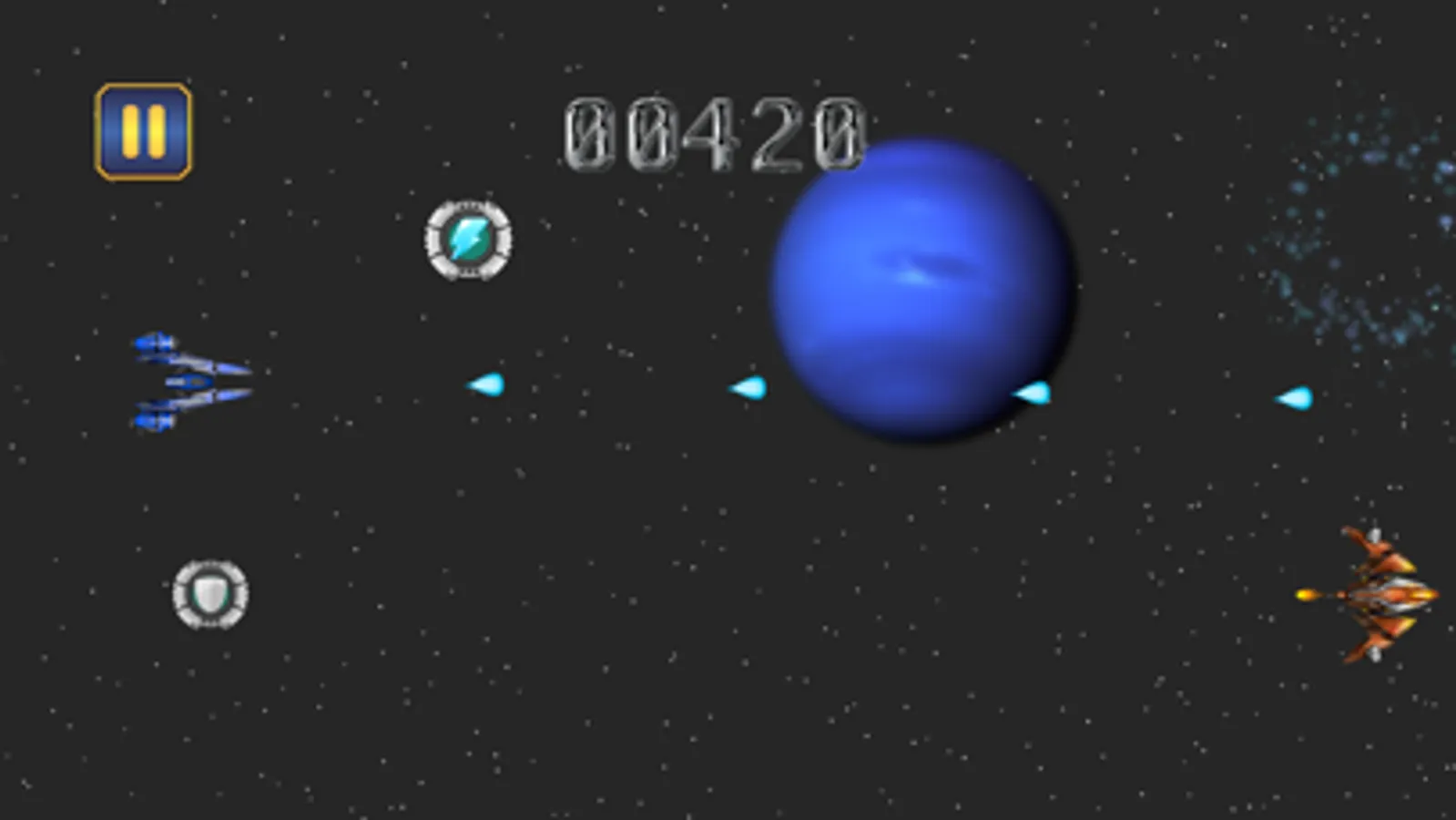 Your missi is too defend the space ship from the attack of enemy and save the world!