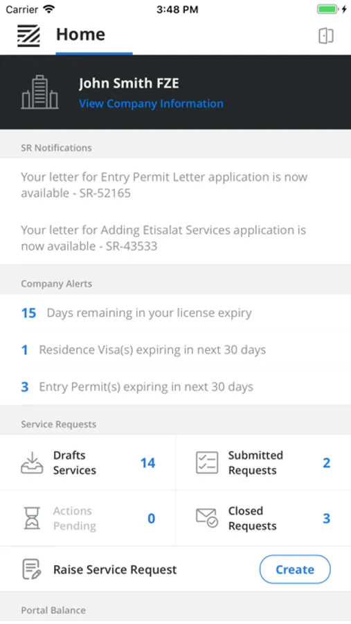 The AFZ Customer App allows investors to access key company information through the mobile app, including license details, shareholder details and company alerts. Through the app, users can raise Service Requests for Renewal, Letters and Certificates, top up their AFZ E-Wallet and view the status of all Service Requests.