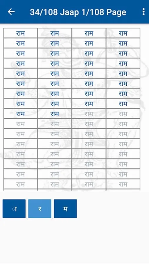 It is believed that anyone who writes Ramnaam on an Akrutibandh (figure) of Hanuman, their one Ramnaam will multifold into a thousand. The Ramnaam book is designed with this exact arrangement with a watermark of Shree Hanuman on which Ramnaam is to be written.