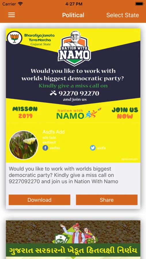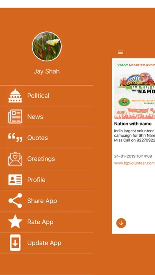 BJP Volunteer App Provides BJP Images and Latest News to its Volunteers Supporters With Unique feature where they get images with their name and profiles. So they can share and download images. Also Provide daily Political News.
