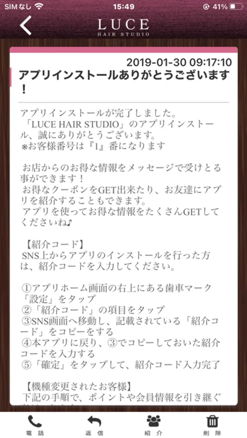 LUCEのアプリをSNSを通じてお友達に紹介する事ができます。