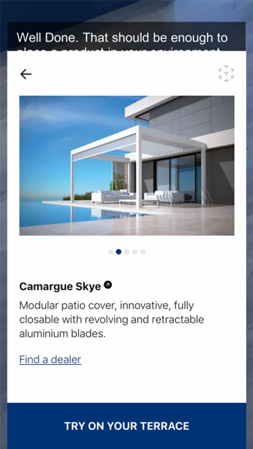 - Scan the floor of the location where you’d like to install your terrace cover. The app will automatically adapt to the right perspective.