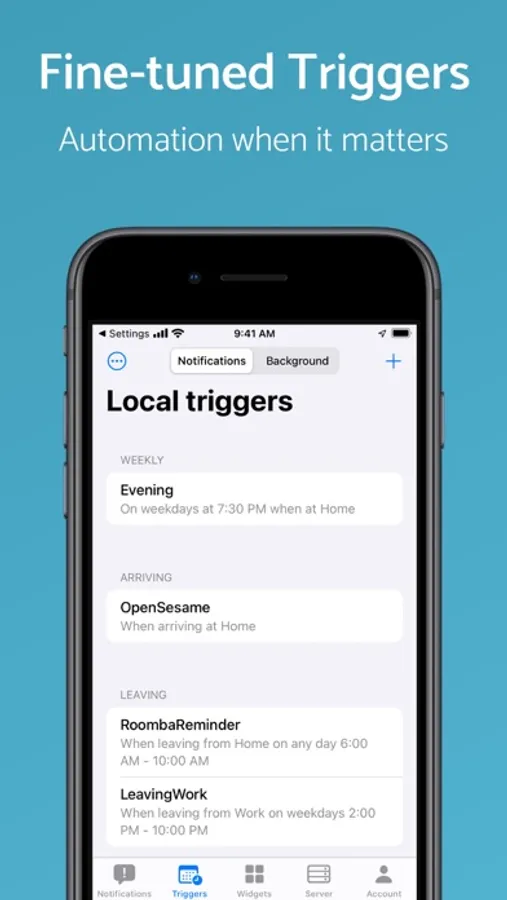 Pushcut helps you kick off your automation when it matters. Create fine-tuned interactions for HomeKit, Shortcuts, and custom workflows through smart notifications and widgets combined with powerful automation actions.